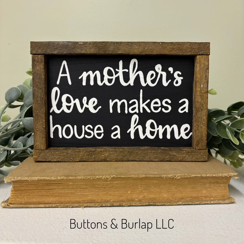 This was 4.5” x 6.5” sign is hand lettered and hand painted. Perfect as a Mother’s Day gift, this shelf sitter is framed in antique tobacco lath this sign has an order processing time of 2 weeks.