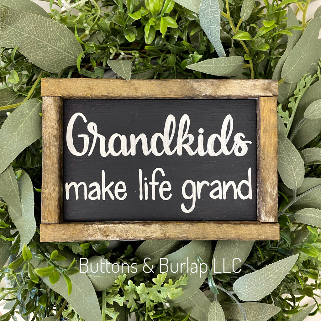 This shelf sitter is a great gift for grandparents! Measuring 4.5” x 6.5” sign is hand lettered and hand painted. Framed in antique tobacco lath this sign has an order processing time of 2 weeks.